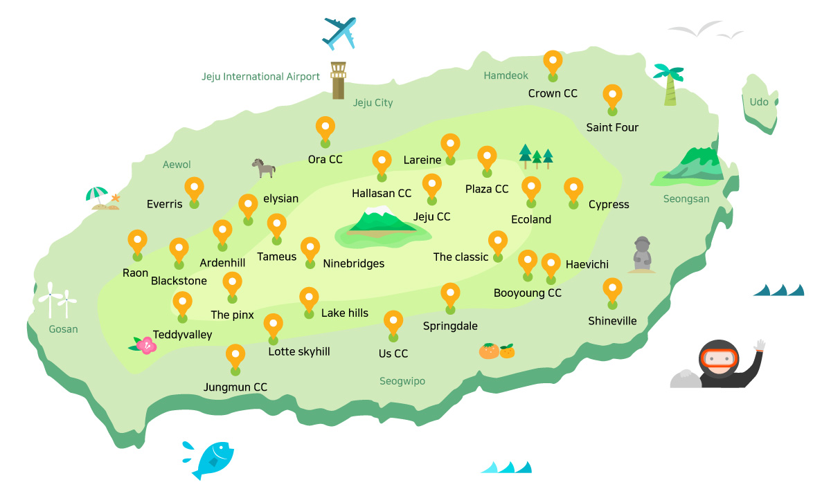 韓國的高爾夫水平尤其是女子項目居於世界領先,榜樣的力量在韓國國民中掀起了一股高爾夫運動熱,高爾夫可在韓國稱得上高端的國民運動,相對應的高爾夫運動設施相對要成熟,濟州與地理位置與中國相近,作為“世界七大自然景觀”擁有高爾夫運動優越環境,前景被中國業界人士所看好。最新數據顯示,濟州目前共有30多所高爾夫場在運營,面積共計3千3百多萬平方米,會員人數達到兩千多萬。